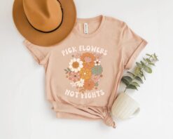 Pick Flowers Not Fights Shirt Anti-Bullying Kindness Tee Retro 70s Aesthetic Motivational Positivity T-Shirt