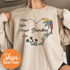Personalized Grandma Sweatshirt with Grandkids Names Custom Mimi Nana Heart Design Unique Gift for Grandmother