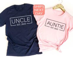 Uncle Est 2025 Shirt and Auntie Est 2025 T-Shirt for Baby Announcement Funny Gift for New Uncle and Aunt