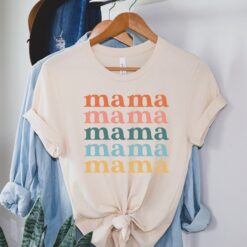 Retro Mama Shirt Groovy Mom Tee Vintage Mommy T-Shirt Cute Mama Gifts for Moms Unique Stacked Mama Design