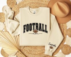 Personalized Football Mom Sweatshirt with Kids Name on Sleeve for Game Day Sports Moms Hoodie