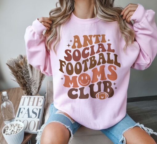Anti Social Football Moms Club Sweater for Game Day and Football Season Unique Gift for Sports Moms