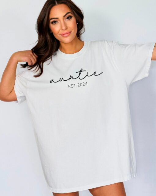Auntie Est 2024 Shirt Auntie To Be Shirt 2024 Aunt Shirt Minimalist Aunt Tshirt Auntie Established Shirt Womens Clothing Gift For Aunt