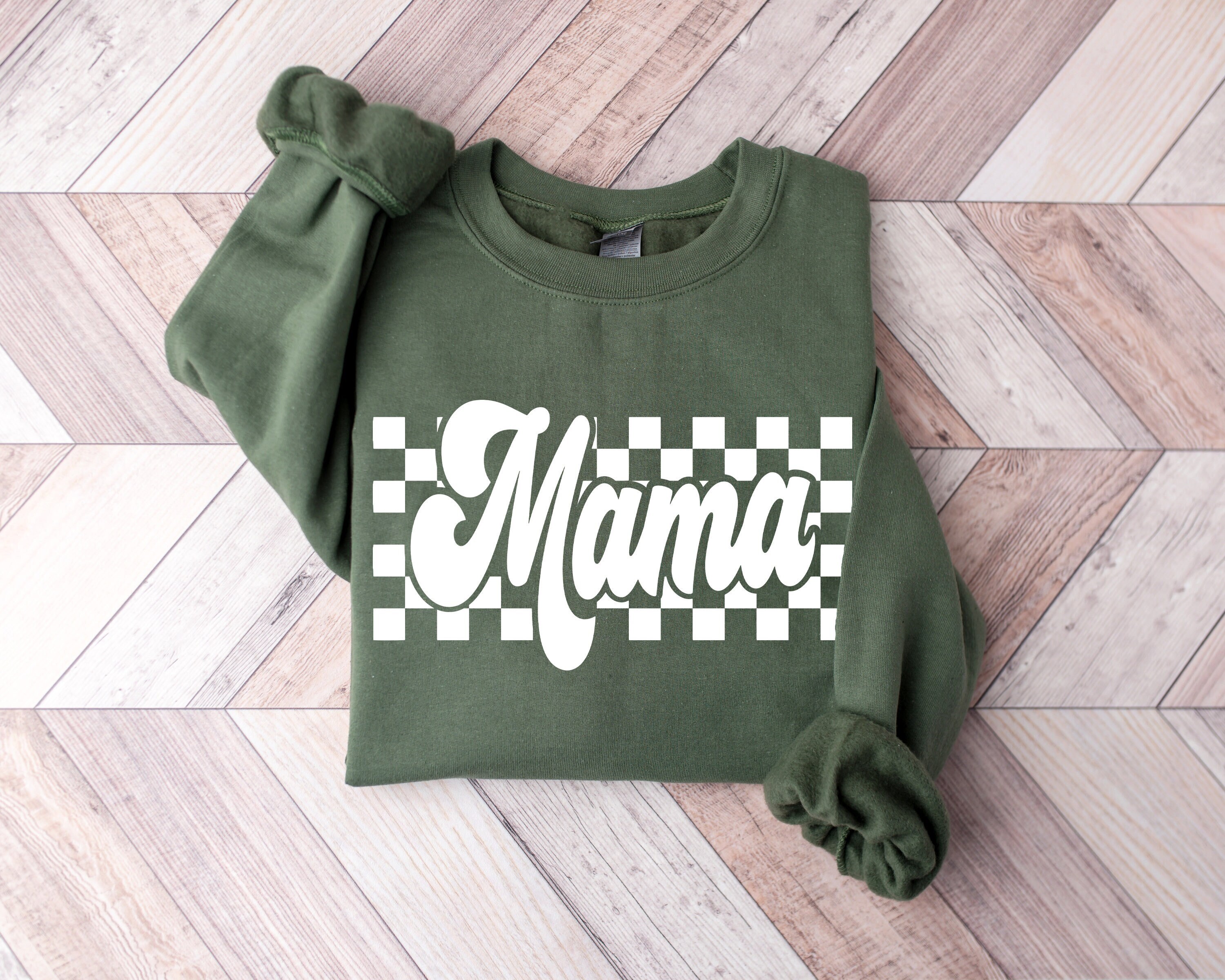 Checkered Retro Mama Sweatshirt for Moms Varsity Crewneck Vintage Shirt Ideal for Mothers Day Gifts and Mom Life