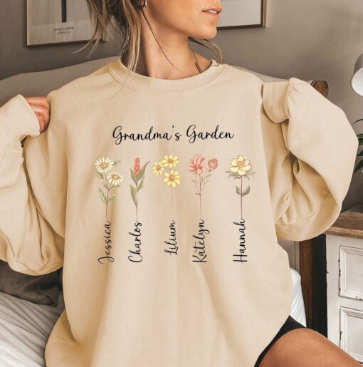Grandmas Garden Sweatshirt Custom Birthflower Sweatshirt Gift for Grandma Love Grows Here Moms Garden