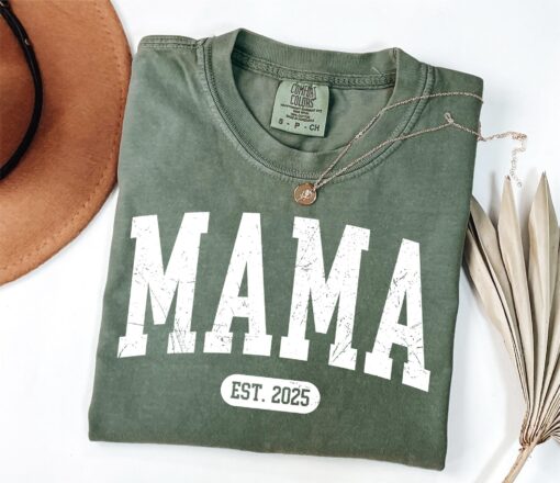 Comfort Colors Custom Mama Shirt MAMA Est Year Shirt New Mommy Gift Mothers Day Shirt Gift For New Mothers Cool Moms Crewneck