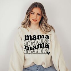 Celebrate the amazing moms in your life with our adorable Mama Sweatshirt. This cute mothers day mama shirt is designed for comfort and style making it a delightful addition to any moms wardrobe. Perfect as a mother day gift this sweatshirt features a trendy design that resonates with all types of moms. Whether its for a new mom or as a pregnancy announcement sweatshirt this vintage mom shirt captures the essence of mom life. Show her shes the best with our collection of funny mom shirts and personalized mom gifts!