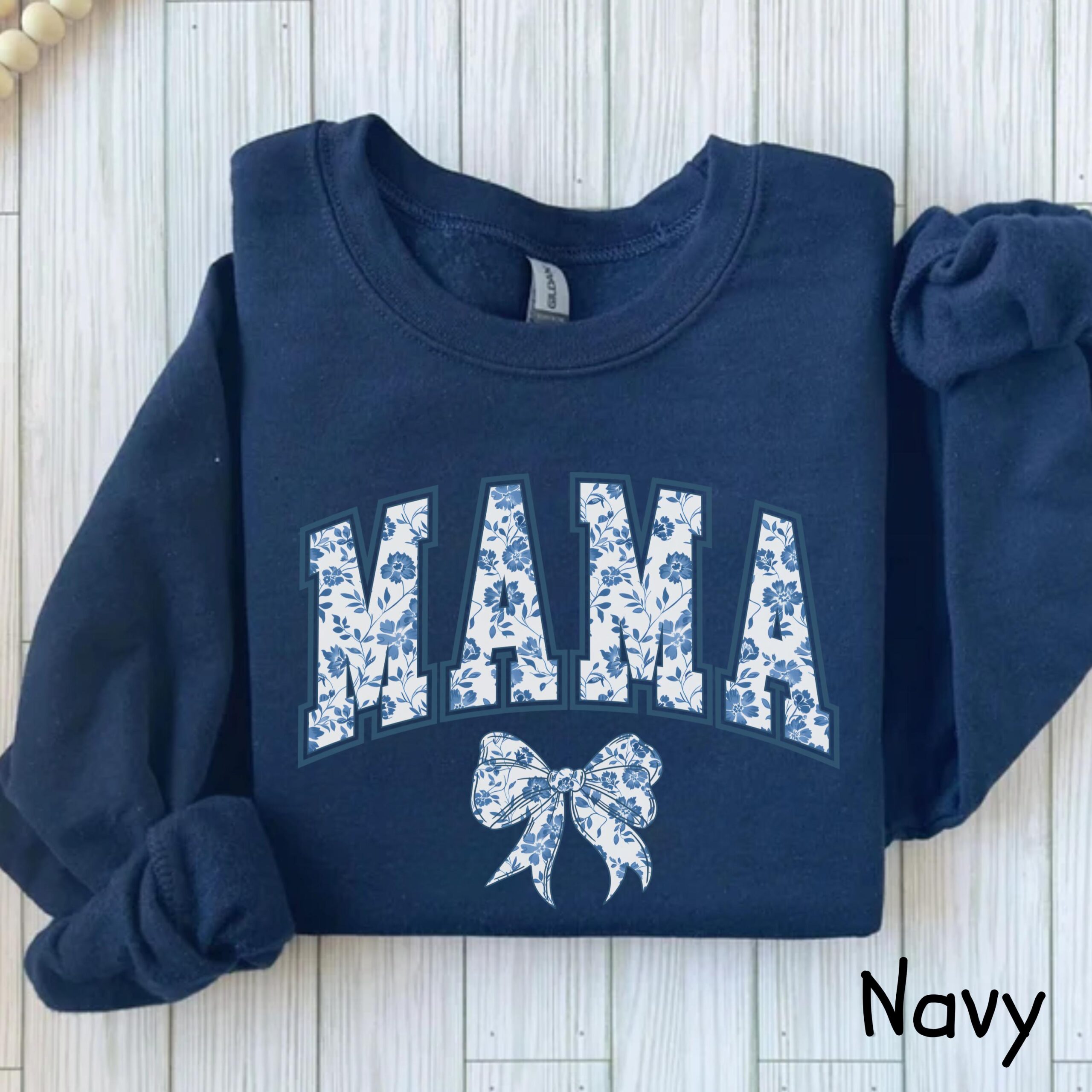 Mama Sweatshirt Blue Ribbon Shirt Mothers Day Gift Girly Aesthetic Gift For Mom Cute Mom Shirt Bow Shirt Chinoiserie Shirt Bow Mom