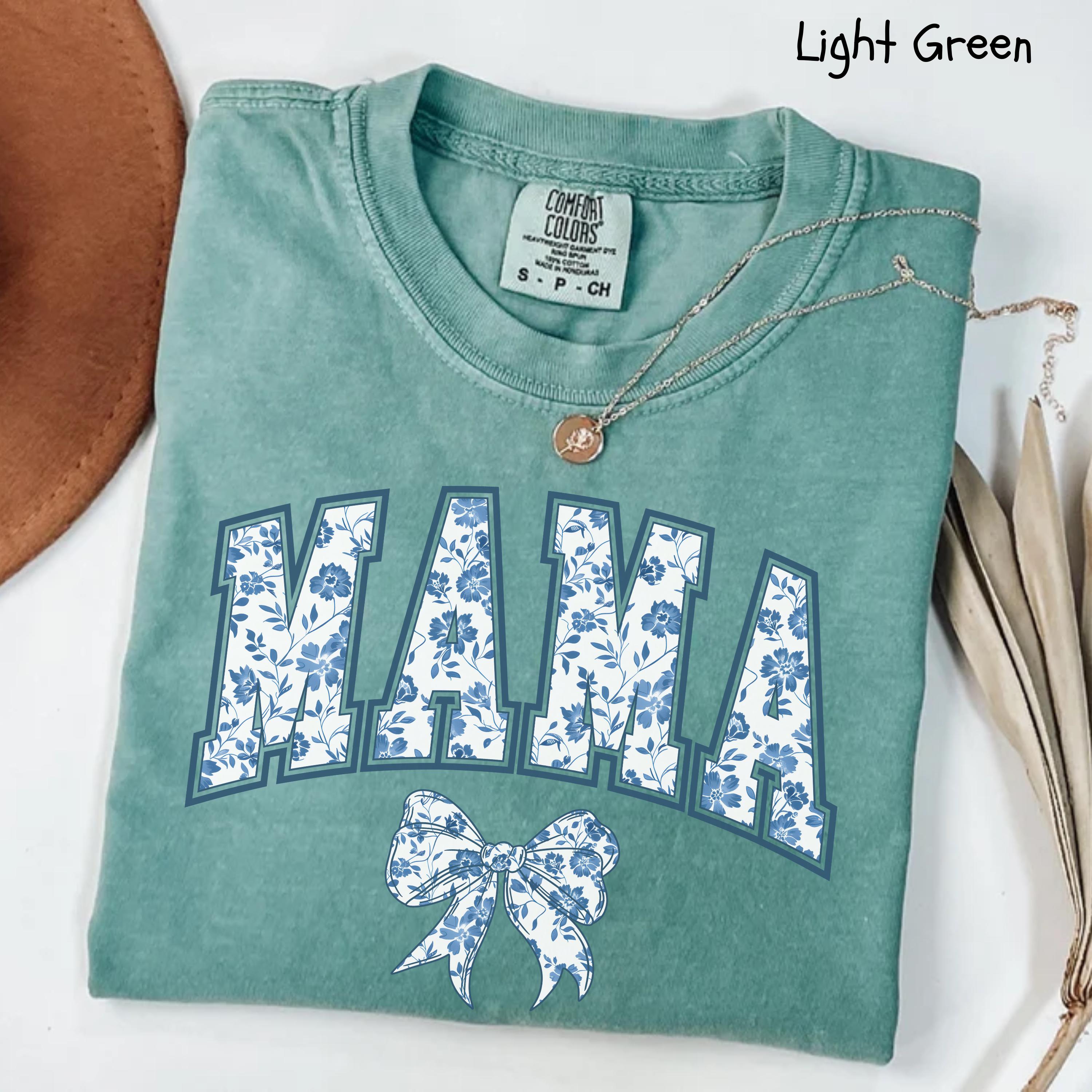 Comfort Colors Mama Shirt Blue Ribbon Shirt Mothers Day Gift Girly Aesthetic Gift For Mom Cute Mom Shirt Bow Shirt Chinoiserie Shirt