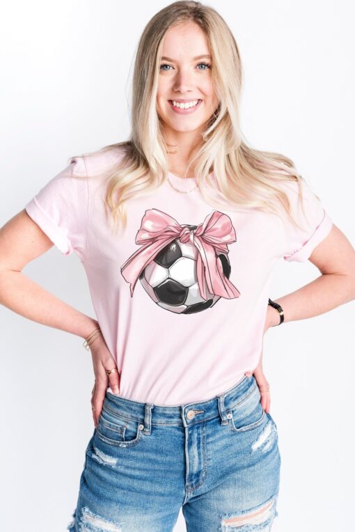 Coquette Soccer Pink Bow Shirt Soft Girl Clothing Cute Soccer Tee Coquette Gift Soccer Mom Shirt Game Night T-Shirt Soccer Sweatshirt