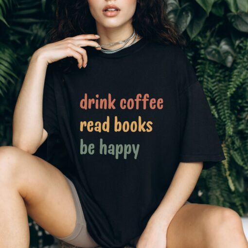 Comfort Colors Drink Coffee Reads Books Be Happy T-Shirt Coffee Lover Shirt Gift for Coffee Lover Shirt Bookish Shirt Book Lover Shirt