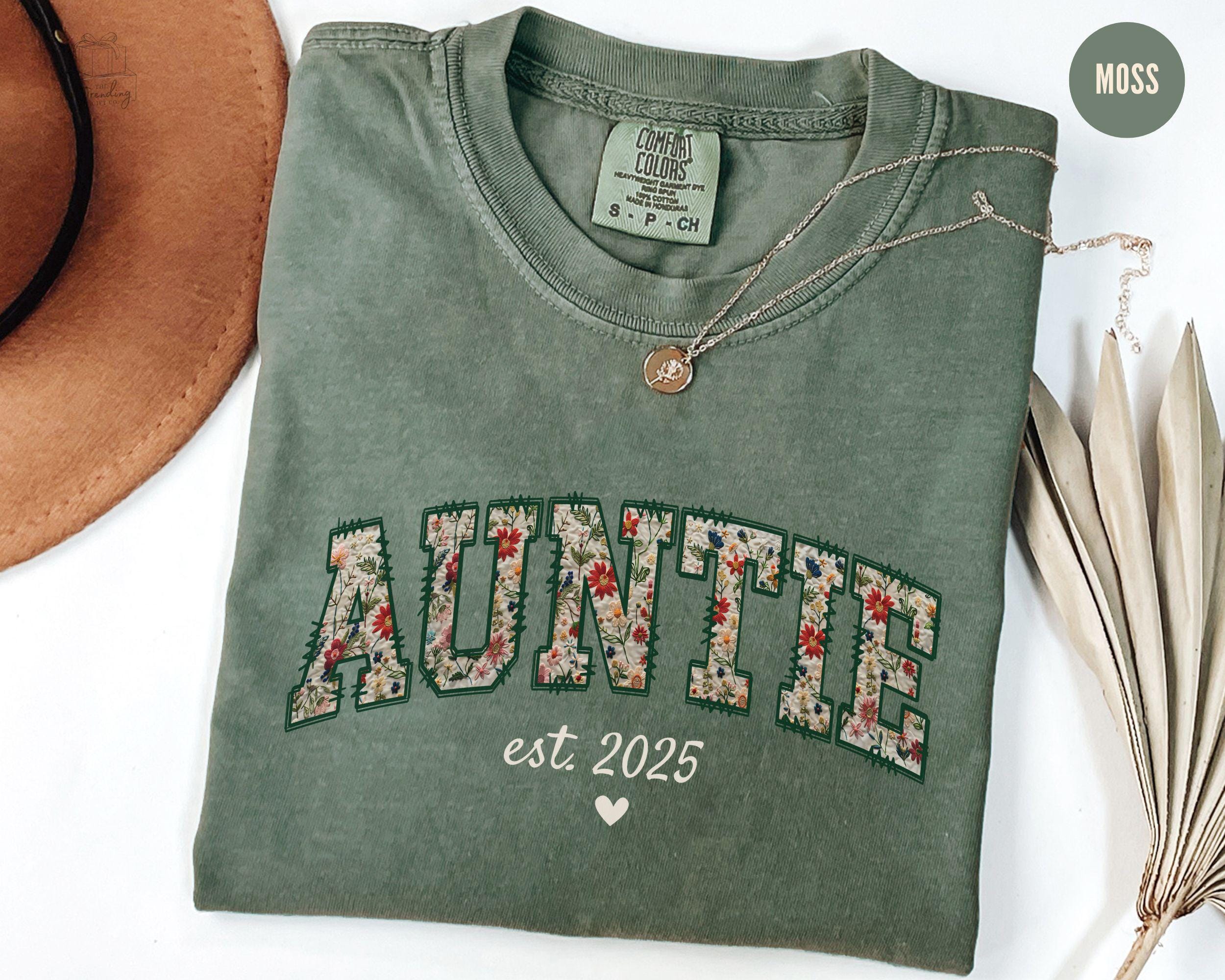 Comfort Colors Auntie Est 2025 Shirt Floral Auntie T-shirt Cool Aunt Club Pregnancy Announcement for Sister Custom Aunt Birthday Gift
