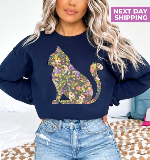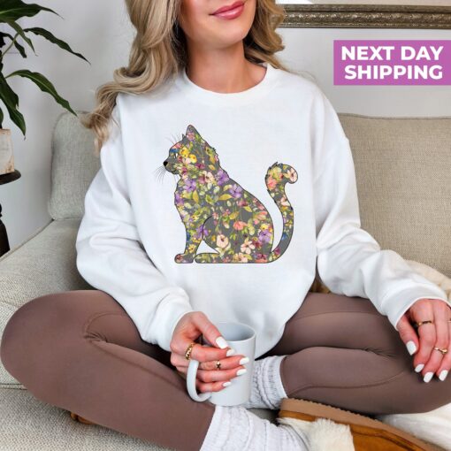Floral Cat Mom Sweatshirt Cute Cat Lover Tee Purr Shirt for Animal Lovers Unique Gift for Cat Moms