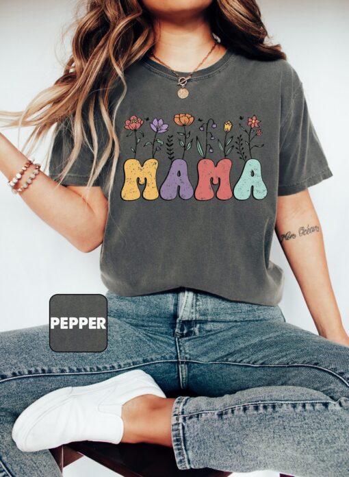 Comfort Colors Floral Mama Shirt Wildflowers Mother Shirt Retro Mom Tees Flower Shirts For Women Floral New Mom Gift Mothers Day Gift