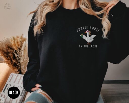 Embroidered Silly Goose Auntie Sweatshirt, Cool Aunts Club Crewneck,Funny Goose Lover Sweater Gift for Aunt,New Pregnancy Announcement Shirt