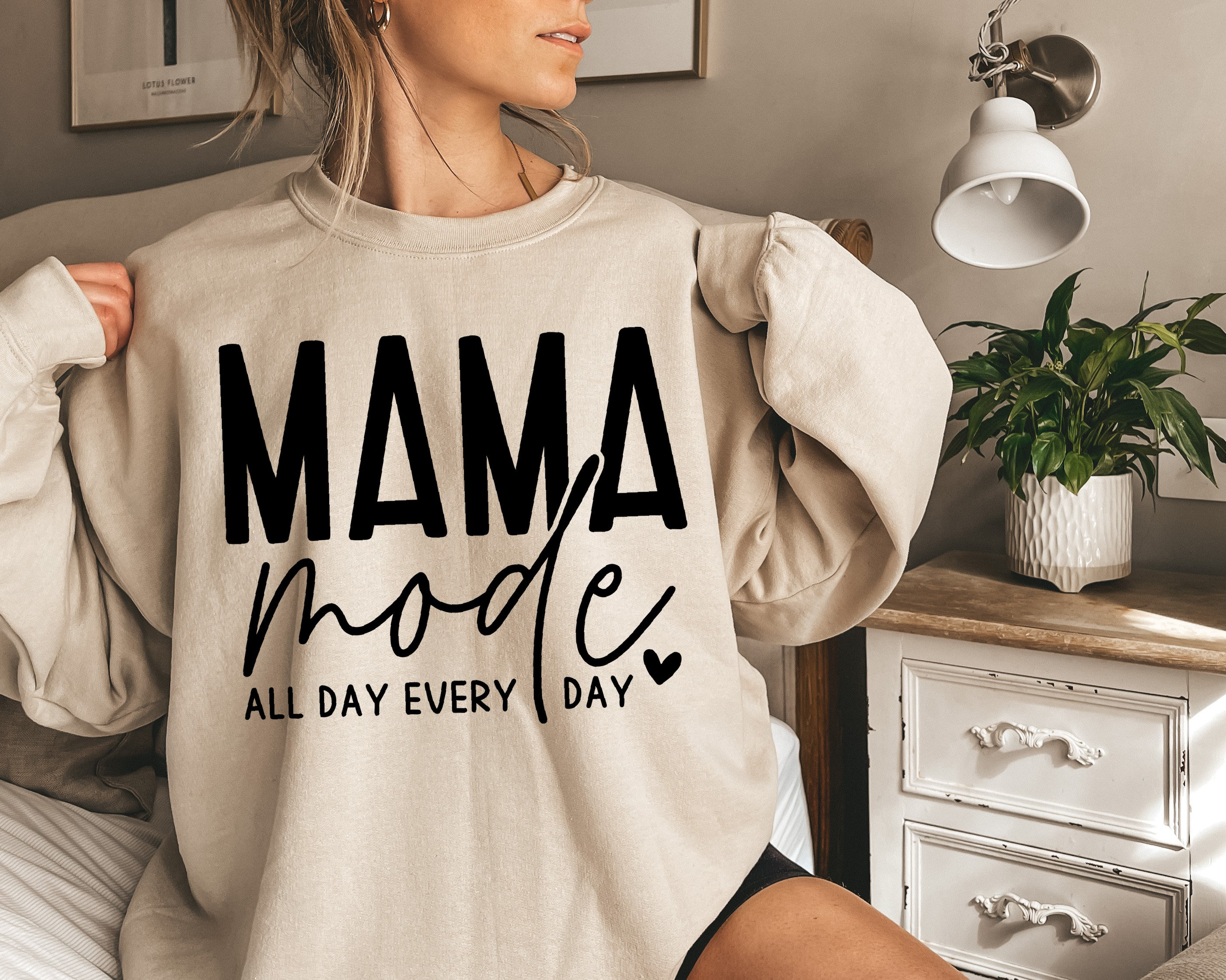 This Mama Mode All Day Every Day Sweatshirt is the ultimate blend of comfort and humor making it a standout choice for moms embracing their busy lives. With its fun design this funny mom shirt celebrates the joy of motherhood while keeping her cozy all day long. Its an ideal mother day gift or a thoughtful surprise for any occasion. Whether shes running errands or relaxing at home this cool mom shirt is sure to bring smiles. Show your appreciation with a gift that resonates with her unique style!
