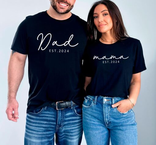 Mama And Dad Est 2024 Shirt Matching Couple Shirts Est Year Tee New Dad Shirt New Mom Shirt Couples Shirts For Valentines Family Gifts