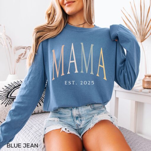 Comfort Colors Mama Est 2025 Long Sleeve T-Shirt Mothers Day Gift For New Mom Pregnancy Reveal Gift For First Time Mom Mama Shirt