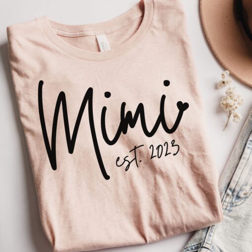 Celebrate the joy of being a new grandma with our Mimi est 2025 shirt. This cute mom t-shirt is designed for the stylish grandmother who embraces her new title. Made from soft fabric its perfect for daily wear or family gatherings. Whether youre looking for personalized mom gifts or a funny mom shirt to bring smiles this is a great choice. Surprise your loved ones with this heartwarming gift on Mothers Day and let them showcase their love for the best mom ever proudly.