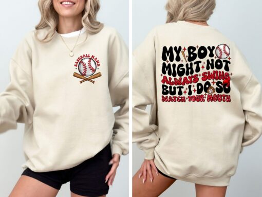 My Boy Might Not Always Swing But I Do So Watch Your Mouth, Baseball Mom Shirt, Gameday Shirt, Baseball Mom Gift, Sport Mom Tee, Sports Team