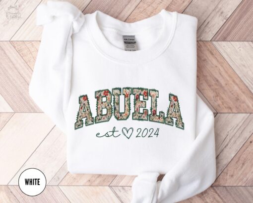 Personalized Abuela Est Sweatshirt Custom Floral Grandma Crewneck New Abuela Christmas Gift Pregnancy Announcement Latin Grandma Shirt