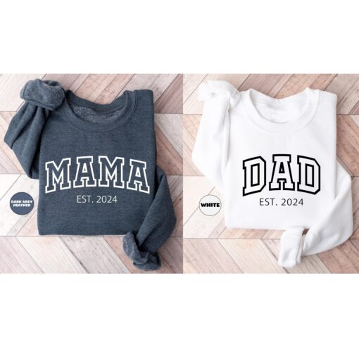 Personalized Mama and Dad Sweatshirt for Pregnancy Reveal Matching Parents Hoodie Unique Announcement Outfit