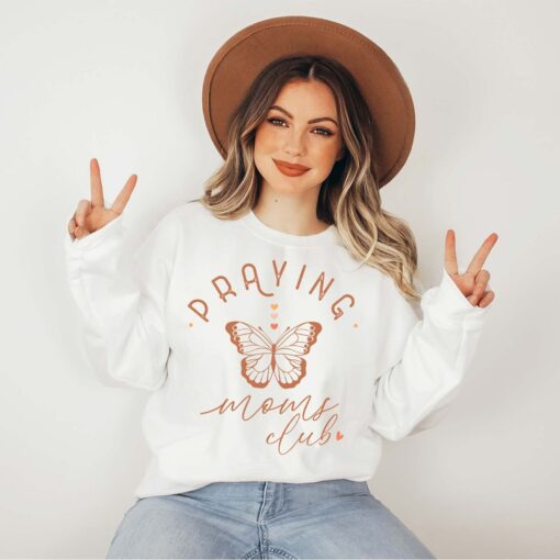Praying Moms Club Butterfly Sweater Cute Mom Life Sweatshirt Best Pregnancy Announcement Hoodie Mothers Day Shirt