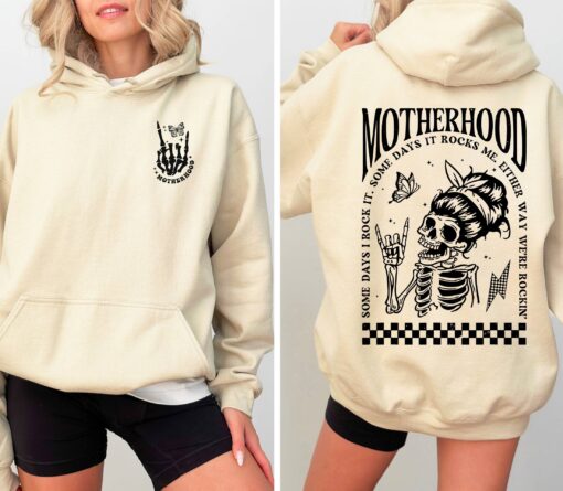 Rocking Motherhood Hoodie for Moms with Skeleton Design Funny Mom Shirt Ideal for Mothers Day Gifts