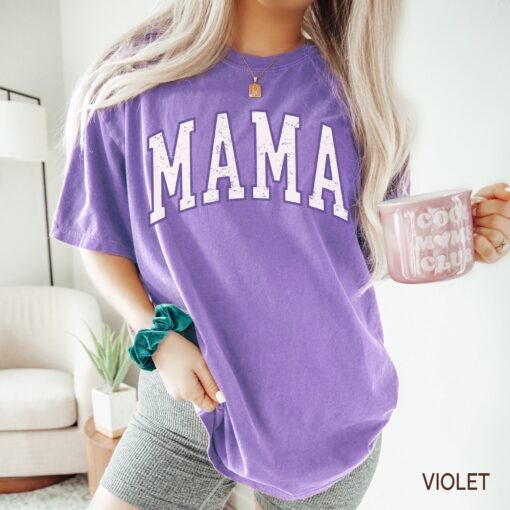 Retro Mama Shirt Gift For New Mom Gift Cute Violet Mama T-Shirt Comfort Colors Oversized Tee Mothers Day Gift For Mom Varsity Tshirt